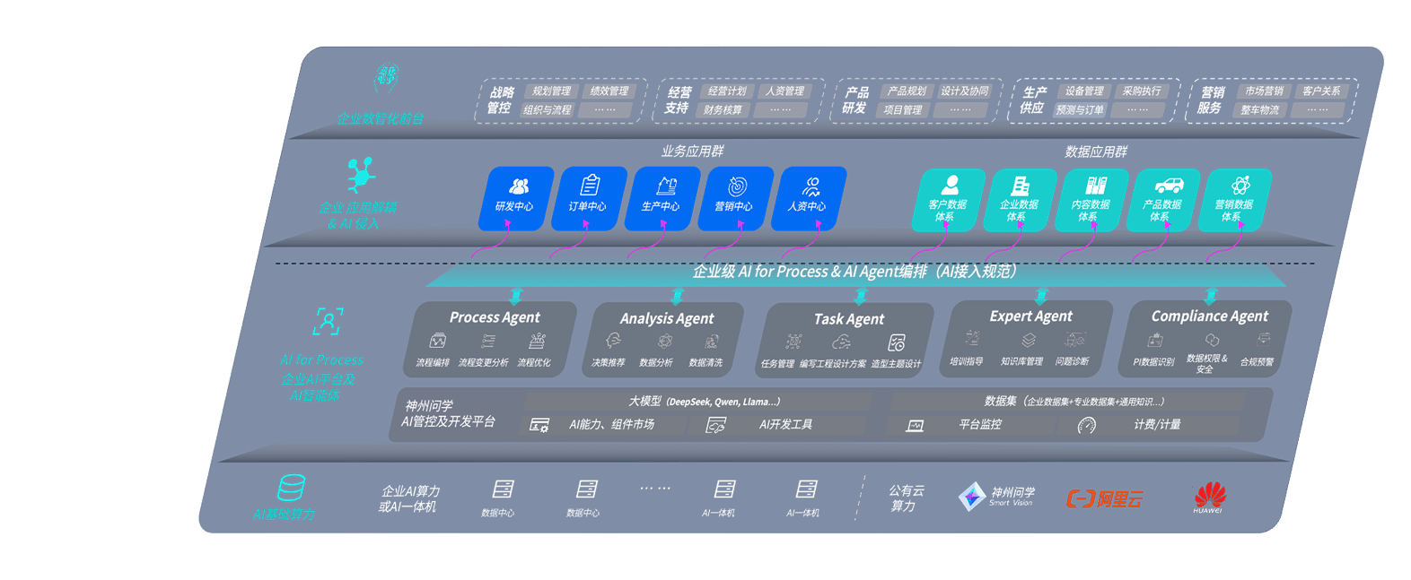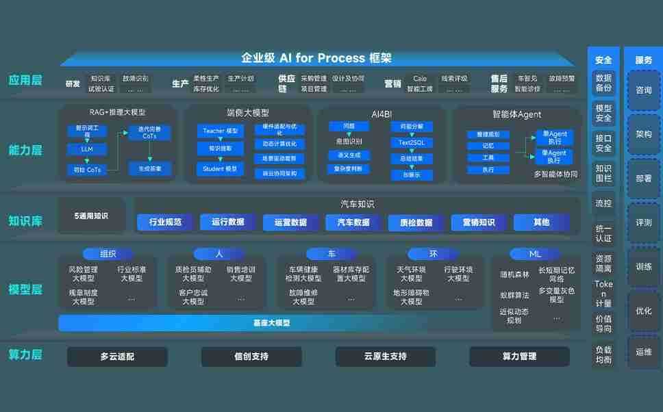 广东会问学智车解决方案是一套基于AI技术的汽车行业智能化系统,,覆盖从底层算力到顶层AI应用的全栈方案。。。。方案由算力层、、、、模型层和应用层组成:算力层,,,方案支持多种一体机配置,,具备云端灵活部署、、多云适配以及动态优化计算资源的能力;模型层,,广东会问学平台版提供了企业级AI应用一站式构建与管理平台,,支持基于后训练强化技术的汽车企业专属模型的训练、、评测和运营;应用层,,,广东会问学DeepSeek版提供包括超级员工、、智能招采、、、智能营销、、、智能客服、、、、AI for BI等一系列解决方案,,可助力汽车行业实现数字化转型,,,,让管理更智能、、、响应更敏捷。。